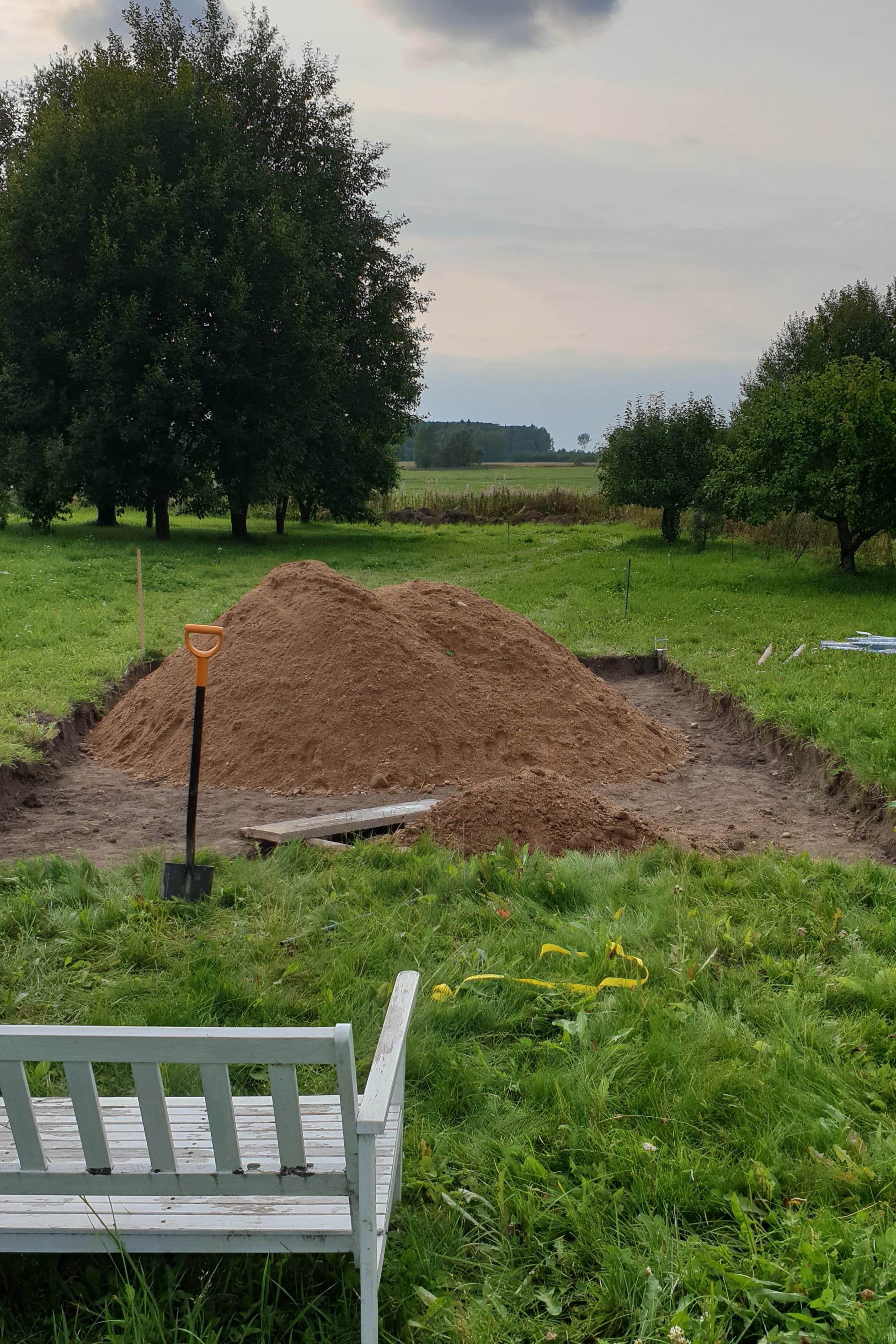 August 2019 was spent gathering materials. By September, Heiko brought out his trusty shovel to prep the ground. The design was a two-part sanctuary: an open shelter with a heated drinker for the horses and a secure, closed tack and feed room.