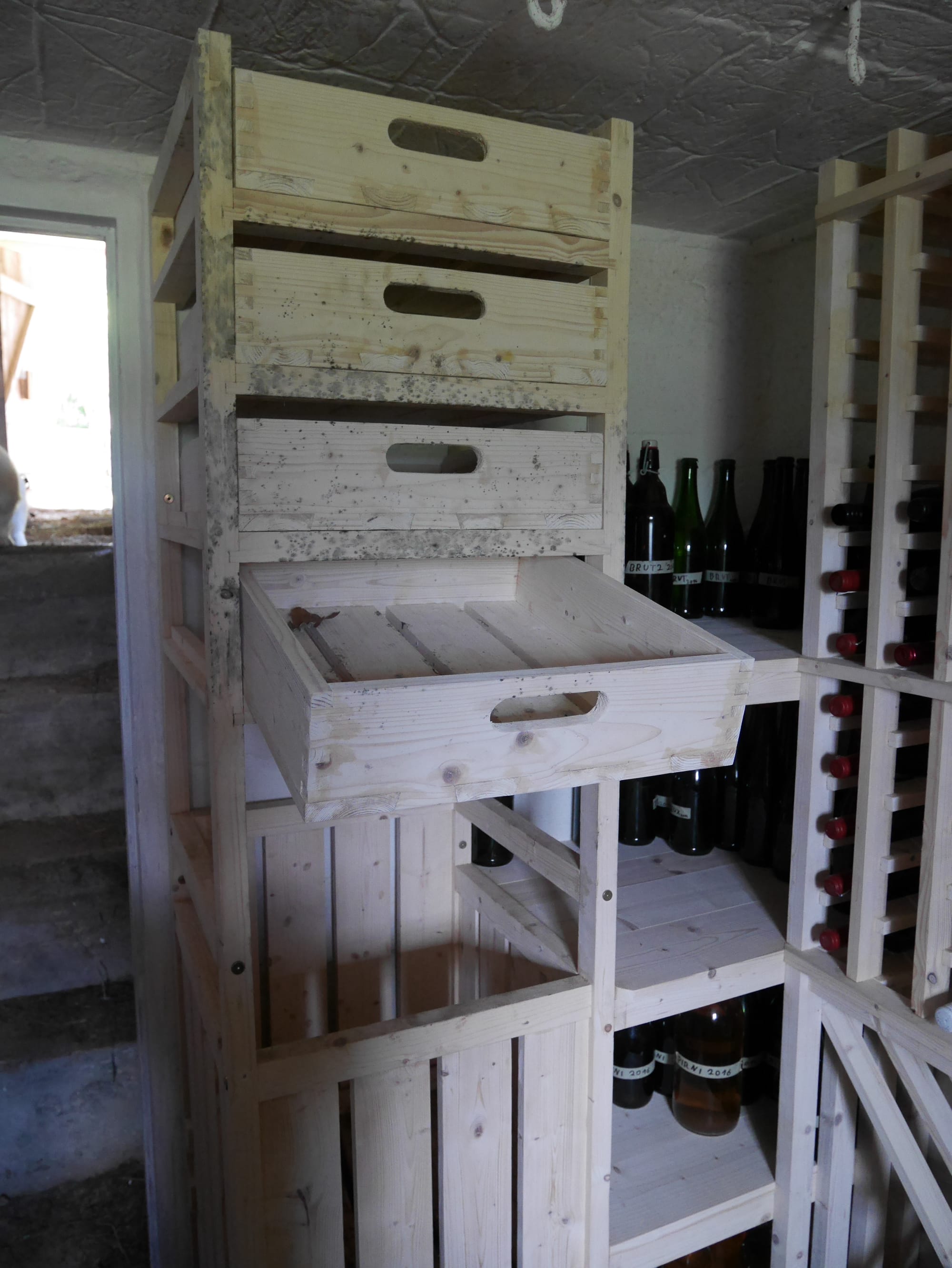 Kui vesi oli kadunud, saime lõpuks ette võtta siseviimistluse. Arvestades, et me pole just eriti viljakas moosikeetjate pere, vajas kelder uut eesmärki. Siis astus mängu Heiko oma ustavate tööriistade ja silmaga, mis seletas vaid erilahendusi.