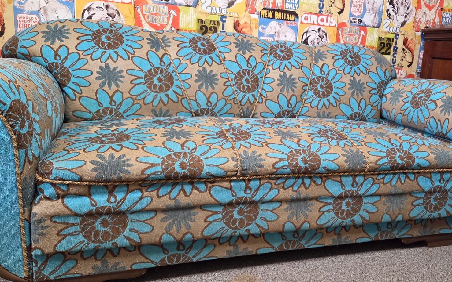 I wanted flowers, but definitely not the dusty patterns of the thirties. After a long search, we found a high-quality fabric that had all those demands woven into it—a perfect bridge between the sofa's historic shape and our modern life. It turns out that when you combine Heiko’s traditional craftsmanship with a bold color palette, you get a piece that doesn't just sit in the room—it owns it.